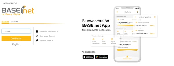 - Ingresa a Baseinet (https://web.baseinet.com/) con tu usuario y contraseña.